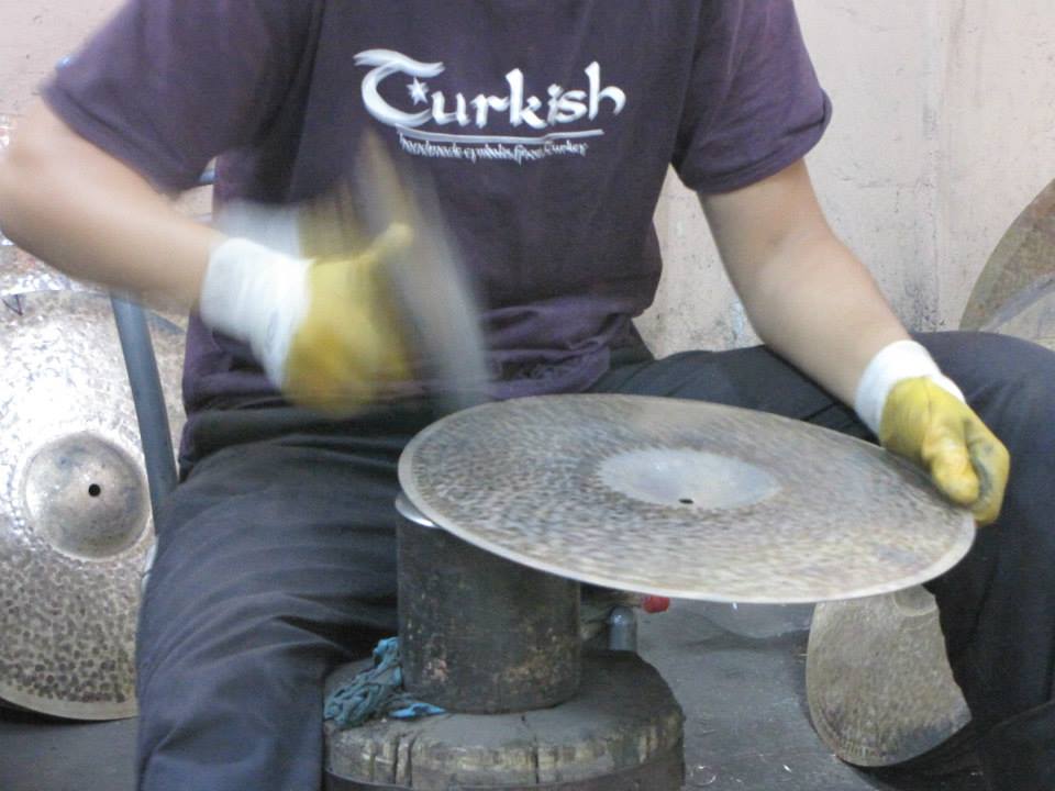 Proces produkcji sięga swoimi korzeniami do początków XVII wieku. Rozgrzane do czerwoności dyski są wypalane w specjalnych piecach. Brąz, czyli połączenie cyny i miedzi, przechodzi najpierw surową selekcję, zanim zostanie przetopiony na talerze. Płynny metal odlewany jest do form, które nadają przyszłemu talerzowi wstępny kształt. Po procesie schładzania dysk ląduje w tradycyjnym piecu, grzanym drewnem i węglem. Gdy każdy odlew nabierze solidnej konsystencji, zostaje dodana kolejna, koncentryczna warstwa na środku talerza - to przyszły bell. Po skrawaniu, blacha ląduje w warsztacie, gdzie jest ręcznie przekuwana - to największy sekret firmy Turkish. Każdy talerz jest dostrajany w zależności od swojego charakteru do pożądanej barwy i głośności. Po procesie przekuwania, kiedy blacha jest już perfekcyjnie skomponowana, trafia na proces skrawania i polerowania. Frezowanie oraz wycinanie specjalnych wersji także zachodzi na ostatecznym etapie produkcji. Polerowanie ręczne to żmudny proces, który wieńczy skomplikowaną operację.